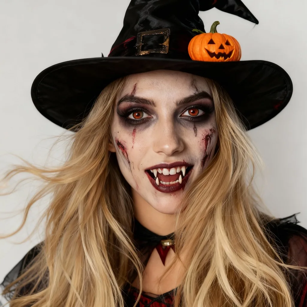 Create stunning Halloween costume looks with Nano Banana Pro. Transform your photos with creative makeup, festive outfits, and fun accessories like witch hats, vampire fangs, or pumpkin elements while keeping your features recognizable.